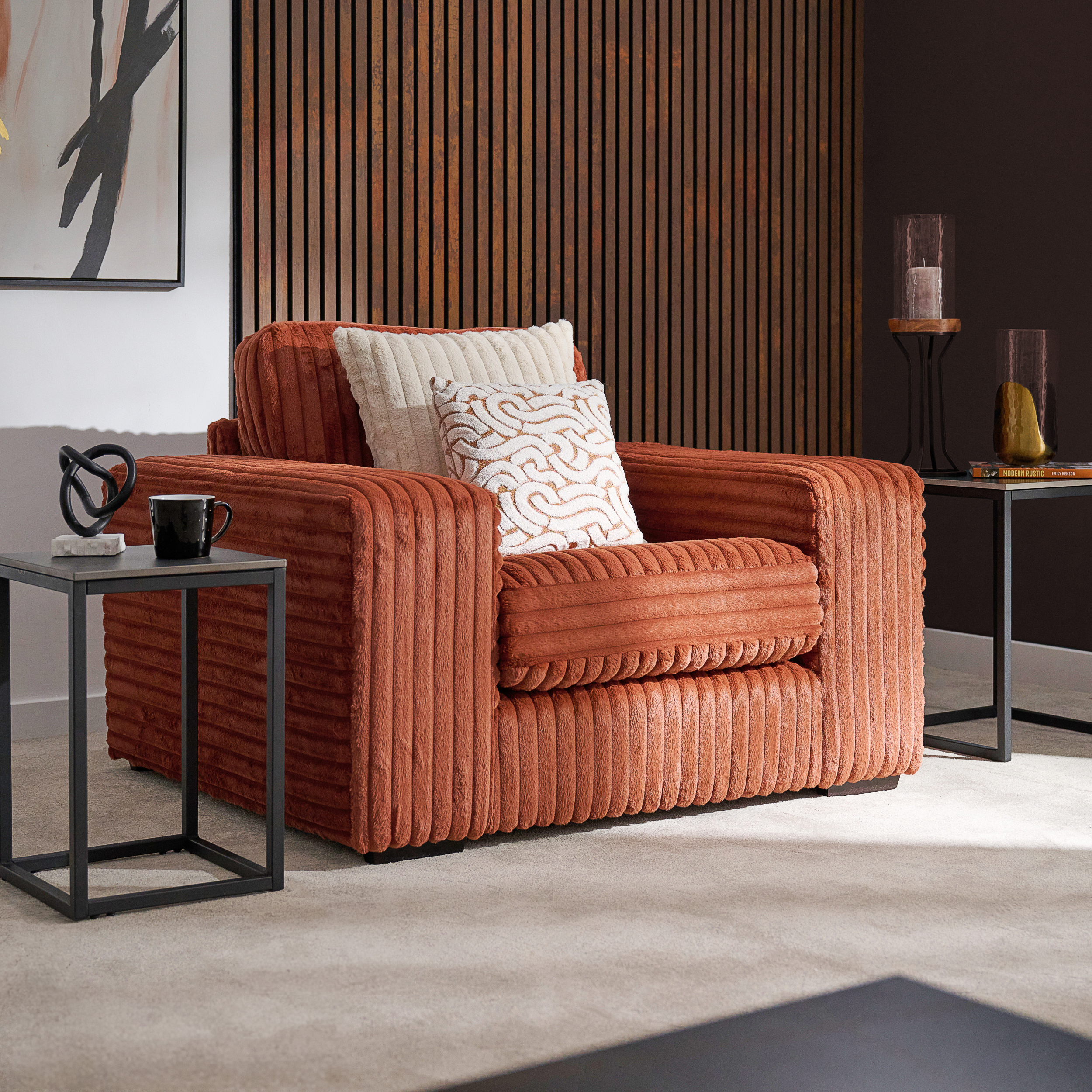 The Bonnie collection combines contemporary design with an inviting, cosy feel, making it a perfect fit for any modern home. Thoughtfully crafted with generous proportions, each piece in the Bonnie range is designed to offer ultimate relaxation, allowing you to sink into its soft, supportive foam and fibre-filled cushions. Upholstered in a plush, high-pile sculptured cord fabric, the Bonnie collection creates a striking statement, further enhanced by a selection of large, contrasting scatter cushions and bold patterned accents. This versatile range offers a variety of options to suit any space, with left or right hand facing chaise sofas, spacious two-seaters, armchairs, and a matching footstool to complete the set. Built on a durable hardwood frame and available with oak or mahogany feet, each piece is designed to stand the test of time while adding an on-trend, textured look to your living area. The Bonnie collection is where comfort meets style, making it easy to create a warm, inviting atmosphere in your home.