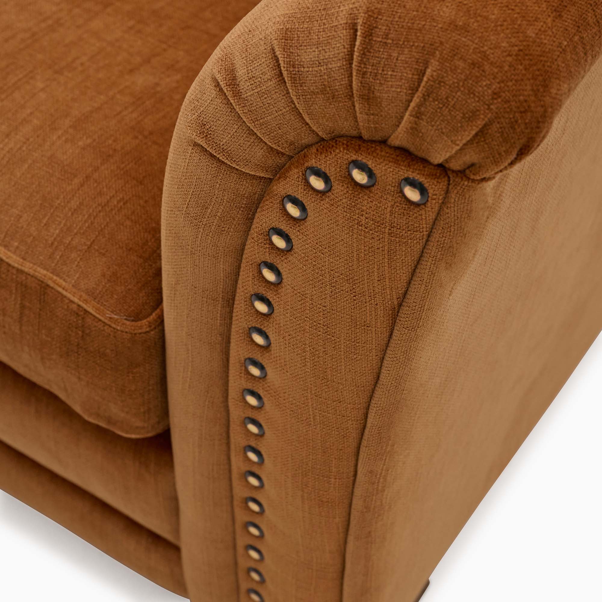 Introducing the Burton Range, a collection that embodies subtle elegance and timeless design, perfect for elevating any living space. Each piece in the Burton Range showcases perfectly proportioned sabre arms and hand-pleated soft styling. Optional antique studs, meticulously hand-tacked in place, add a touch of intricate detail for those who appreciate classic craftsmanship. Upholstered in a choice of beautiful fabrics, ranging from warm, earthy shades to vibrant colours, the collection allows you to create a cosy, inviting atmosphere or make a bold statement against neutral schemes. The overall design of the Burton Range draws inspiration from rustic and nostalgic elements, reminiscent of farmhouse or cottage-style interiors. This collection is not just furniture; it's a series of centrepieces that bring warmth, comfort, and timeless style to your home. Whether you choose the grand sofa, armchair, or any other piece from this exquisite range, the Burton collection promises to transform your living space with its elegance and charm.