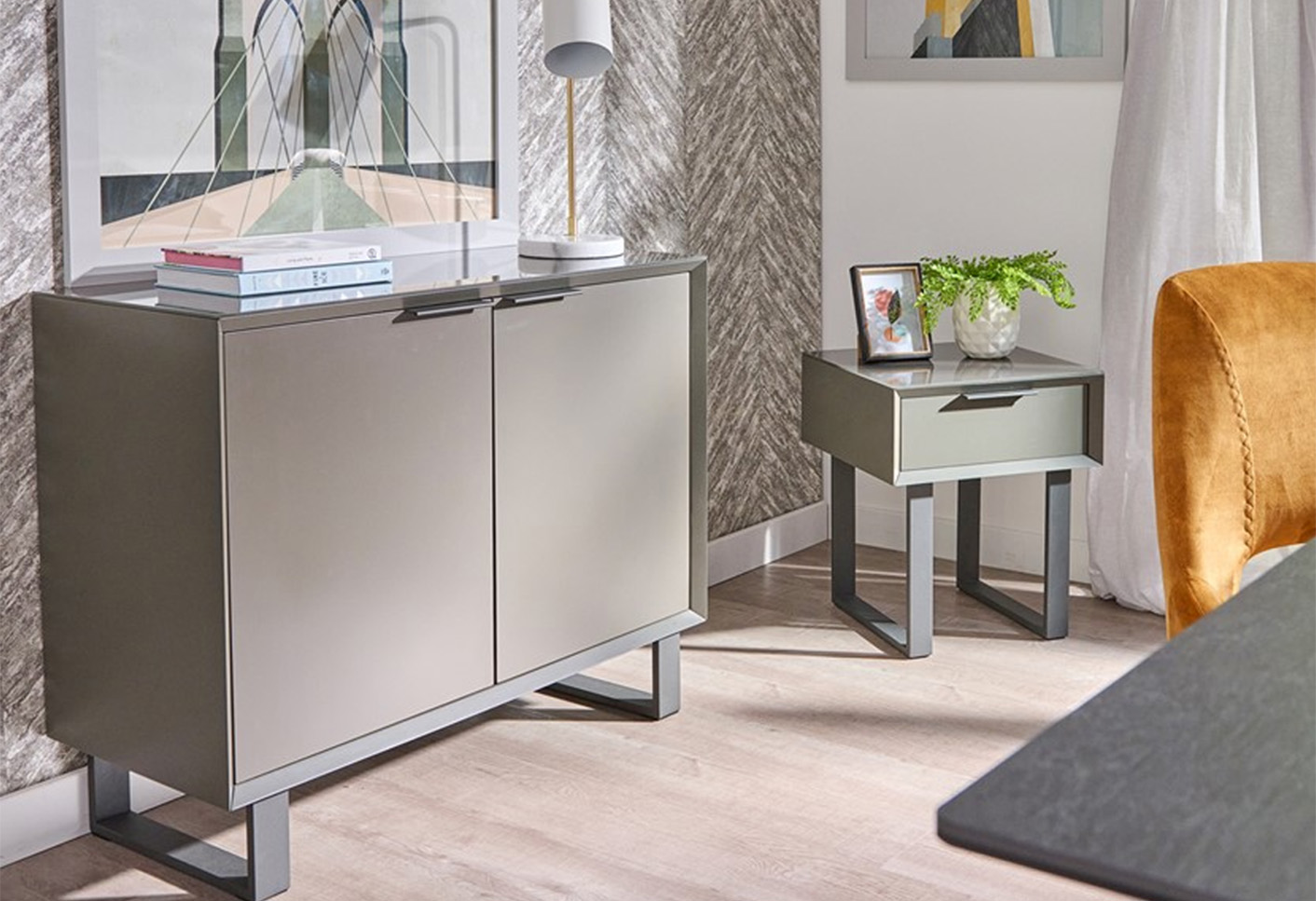 The Eclipse Rage features eye-pleasing furniture in a modern and sophisticated design. Built using durable MDF with metal legs, the materials provide quality as well as great looks. Finished in a matt black coating and a tempered glass top, every piece in the range comes together beautifully creating perfect modern furniture. The Eclipse range includes sideboards with plenty of storage and fashionable bedside tables, along with a variety of other enjoyable pieces. Available online or in-store at Sterling Home.
