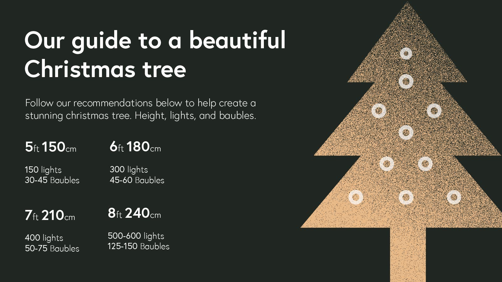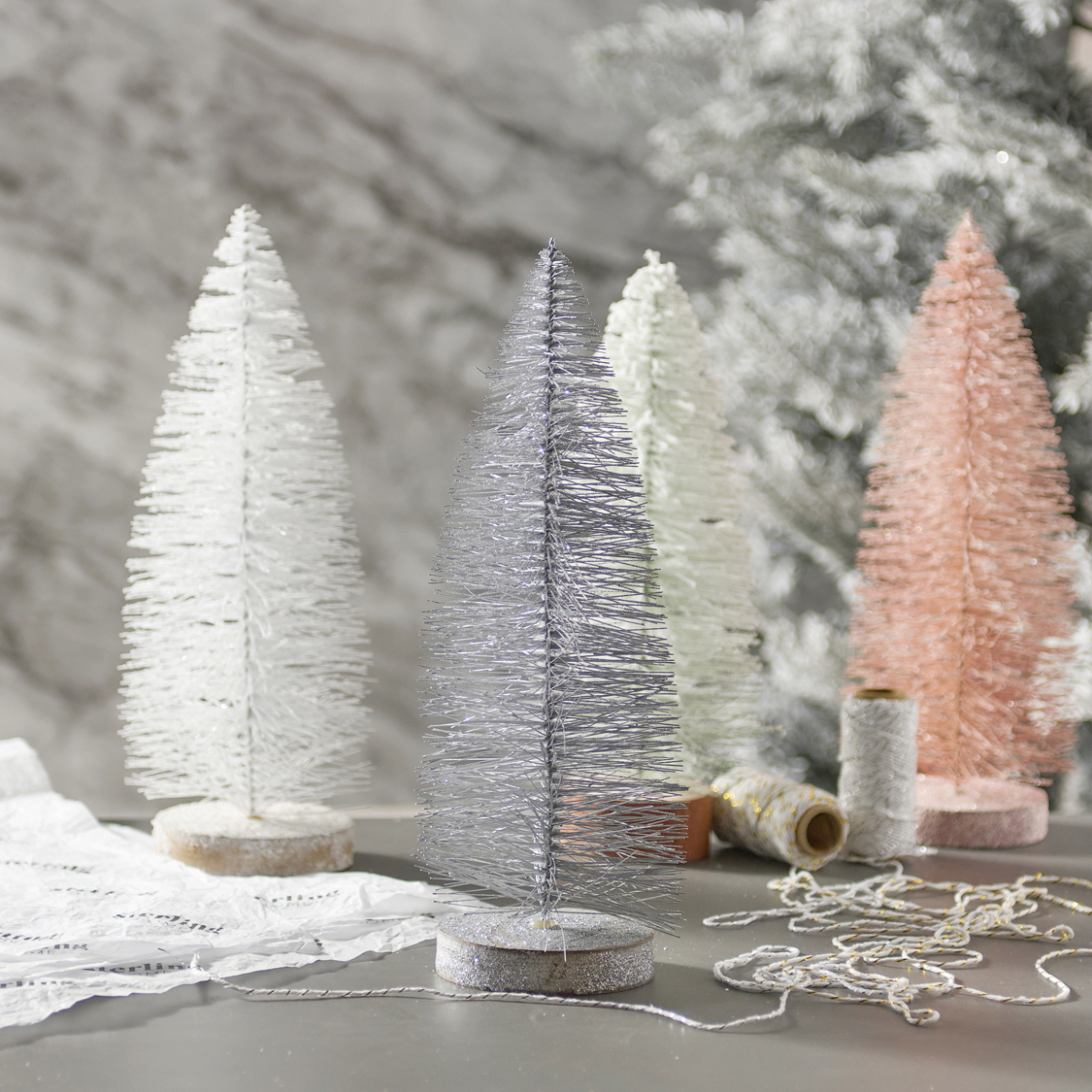 If you prefer the natural look, there's plenty of forest green trees to choose from. If you prefer a snowy look choose a frosted or flocked finish.