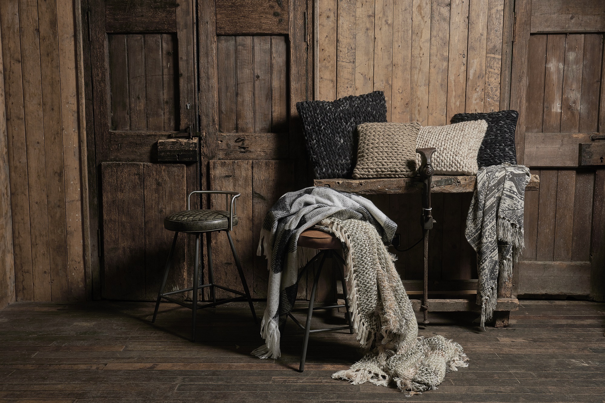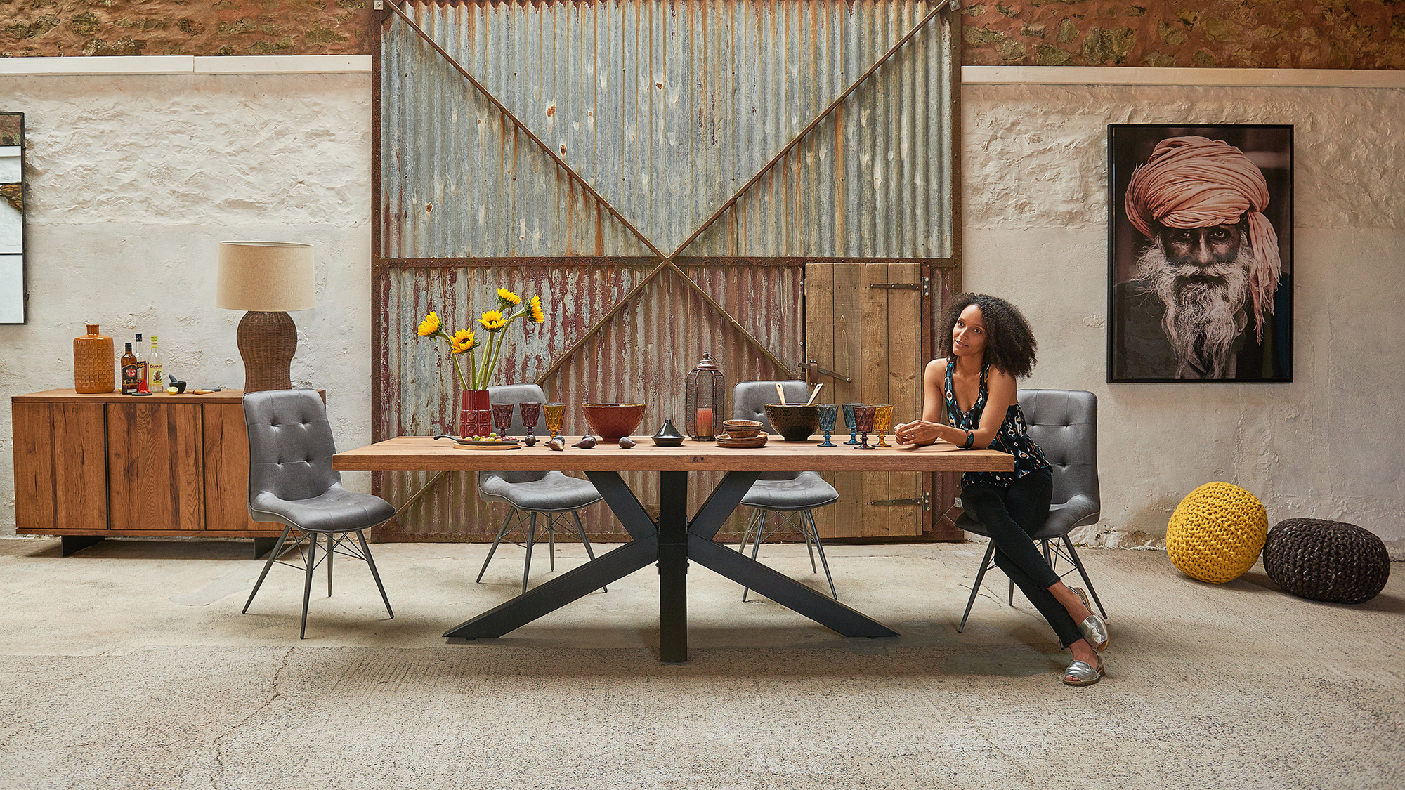 Our Industrial look chases the hippy traveller lifestyle, making interiors look as though the occupants have quite settled down yet. They are softened by inviting a little colour and mix of fabrics into soft furnishings.