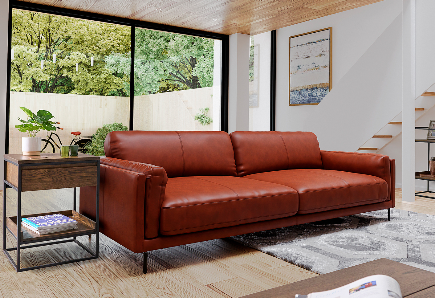 With its minimalist style, the armchair, footstool and sofas in the Morris range are an excellent choice for your Scandi-inspired interior. With the perfect combination of comfort and design led style, you can choose from several colours and grades of leather or fabric to suit your space. Combining the durability of a strong hardwood frame and no-sag springs with the softness of foam, fiber and feather filled cushions this is a sofa that does not compromise on comfort. Whether you are dressing a large room or a cosy space, there are 4 sofa sizes to choose from so you’re sure to find the perfect sofa.