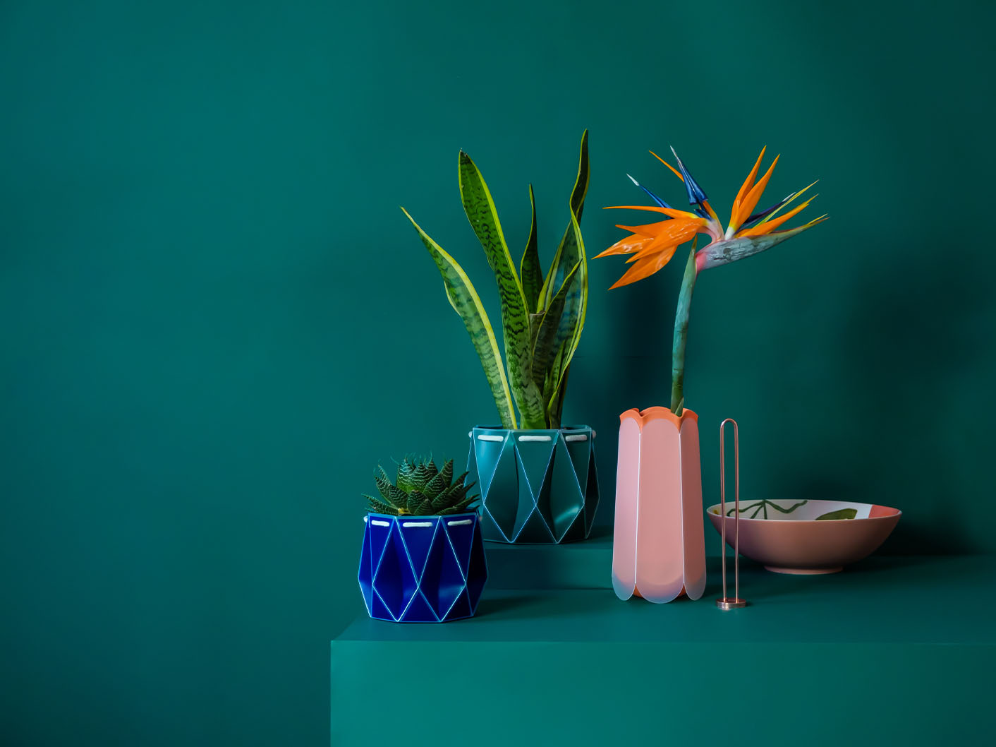 Potr uses 95% less material than traditional planters due to recycled sheet material that is only 0.7mm thick. Your flowers will last longer with the copper stem technology that actively kills bacterial buildup in the water, the number one flower killer. The cotton cord seen in all the plant pots removes the hassle of guessing when to water your plant; the water transfers from the reservoir to the base of the pot.